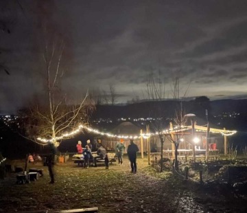 Přestože Dvoreček odložil sněhový šat, který je před Vánoci nejlíbivější, tento týden mu to slušelo. Chystali jsme jej na adventní slavnost. Nanosili jsem si z lesa dříví na oheň, chvojí na výzdobu, obrázky do skleněných dveří, mašličky, světýlka... a nejvíc mu slušela společnost dětí a rodičů, která se sešla u ohně, společného zpěvu a vzájemného milého slova. Teplo a světlo ohniště jsme na chvíli odvážně vyměnili za putování temným lesem a došli jsme odměny přímo andělské. Prošli jsme kouzelnou spirálou a světlo si odnesli s sebou. Aby nám svítilo do tmavých dní a nocí, aby nám svítilo v očích i srdcích.