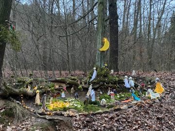 Všechno směřovalo k adventní slavnosti. Dvoreček jsme oděli do slavnostního hávu, světýlka nám krásně ozářila celý prostor a vše doplnila společnost dětí a rodičů. U ohýnku se zpívalo, a cesta lesem byla krásně tichá a napínavá. Po cestě jsme se potěšili Betlémem, který jsme společně vytvořili. Ve spirále nám Anděl předal požehnání, odnášíme si ho v srdíčkách do našich domovů. Nechť jsou nadcházející dny naplněny světlem a klidem.