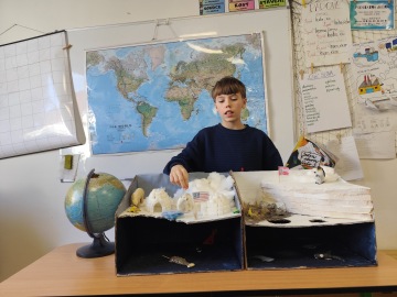 Tundra, tajga, poušť, savana, tropické deštné lesy, trvale zaledněné oblasti, savana a subtropy... Stručný výčet minisvětů, se kterými jsme se několik týdnů seznamovali a budovali je. Ve čtvrtek bylo dílo dovedeno k dokonalosti a my jsme se odvážili je představit spolužákům. Náš miniekosystém v krabici představoval konkrétní prostředí s některými jeho typickými zvířecími obyvately a rostlinami. O každém jsme si připravili krátké povídání, několik obrázků, někteří i kvízy. K dispozici jsme byli i o přestávce, abychom spolužákům lačnícím po informacích mohli zodpovědět otázky a věnovat jim soukromou exkurzi našimi světy. Učili jsme se také pracovat s kritérii a hodnotit podle nich svou práci. V pátek jsme si užili celoškolní masopustní veselí. Na řadu přišla oblíbená promenáda masek, tanec, masopustní bojovka, skákání přes lano. I na učení v týdnu došlo, ale ve světle výše zmíněného se nejmenší společný násobek a druhy přísudku nejeví tak dobrodružně. S dobrým pocitem můžeme směle vyrazit vstříc víkendu.
