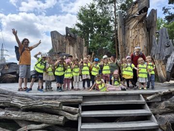 Výletíme, jsme celé dny venku, venku svačíme i obědváme. Užíváme poslední dny ve školce, snažíme si nahrát hlavně ty naše předškoláky do paměti, aby se nám tolik nestýskalo. Úterní výlet do Krtkova světa byl naprosto skvělý. Nesmíte se tedy nechat odradit pohledem, který se vám naskytne, když přicházíte k tomuto areálu. Opravdu hrůza!! Ale pak, když se vnoříte do lesního světa plného dřevěných obrovských prolézaček, trampolín a různých herních prvků, je vám tam několik hodin moc hezky!