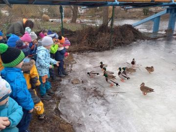 Zvířecí týden je za námi. Děti poznávaly ptáky u krmítek, už jich pár umí i vyjmenovat a moc hezky je pak i nakreslily. Šly jsme společně koupit zdravé krmení pro kachny, kupodivu opravdu nám nadšeně žraly salát, kukuřici a hrášek a to dobré krmení v krabičce ze zoo obchůdku v Černošicích, to znáte. A představte si, že naprosto edukativně šel kolem nás v tu chvíli pán a nabízel nám pytlík s pečivem a my mu vlídně ale pevně :-) vysvětlili, že tohle krmení kachnám škodí, že mají jen pocit sytosti ale výživa žádná. No bylo nám ho trochu líto ale co se dalo dělat. Povídali jsme si i o ostatních zvířatech, o těch stěhovavých i těch, co zůstávají, co pro ně můžeme udělat. Naše krmítko opečováváme jak nejlíp umíme. Určitě se zase ještě vydáme ke krmelci.
