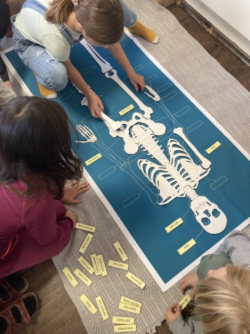 Co je to kostra? Jaká je její funkce? Z čeho se skládá? Jaký je počet kostí dospělého člověka? Jak jsou kosti spolu spojeny? Co je uprostřed kosti? A jak se nazývají jednotlivé kosti naší kosterní soustavy? Na to hledali Veveřáci v rámci projektu na lidské tělo odpovědi v knížkách a encyklopediích. Poskládali jsme si kostlivce a prozkoumali torzo lidského těla. V češtině a matematice jsme ověřili své znalosti. Naučili jsme se zapisovat váhy do rovnic a zopakovali jsme převody jednotek času a délky. V anglickém jazyce procvičovali Veveřáci tvorbu otázek a konverzaci.