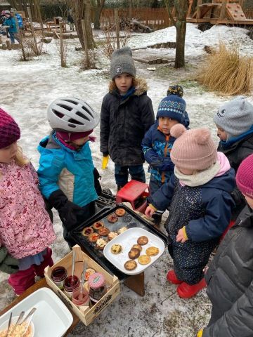 Aktivní týden to byl! Byli jsme hodně venku, užili si koulovačku ve sněhu, klouzání na zmrzlé lávce, pozorování života na řece, malování na papír i na kamínky, zvládli jsme vytvořit a pozorovat další pokus a týden jsme završili pečením bramborových placek na ohni na zahradě! Rarášci si vzali na starost vyrobení Coleslawu, takže krouhali a strouhali o sto šest, aby přispěli na společný stůl :) Byl to naplněný týden plný tvoření a pohybu.