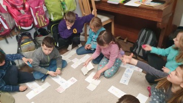 Sešli jsme se ve třídě po dlouhých vánočních prázdninách a po společném sdílení zážitků jsme se vrhli rovnou na učení. V matematice objevovali tajemství sítí krychle a učili se správně umisťovat protilehlé stěny. Pomáhala nám při tom paní Krychle, která přiletěla z planety Krychloktem. Byla velmi marnivá a potřebovala nové šaty, takže jsme pro ni skládali střihy ze čtverců – tedy sítě krychle. Kromě toho jsme procvičovali násobení, dělení a rozvíjeli matematické myšlení. V českém jazyce jsme se pustili do vyjmenovaných slov po B a začali tvořit vlastní lapbook. Pracovali jsme zatím na vyjmenovaných slovech po Z a L, aby nám šla lépe do hlavy. V tělocviku jsme se věnovali cvičení se švihadlem, což nám o kousíček zlepšilo kondici a protáhlo i posílilo svaly. Při angličtině jsme trochu zopakovali slovíčka a fráze z období před Vánoci a vrhli se na lekci č. 3, ve které si povídáme o rodině. Sdíleli jsme, kolik máme sourozenců, namalovali si obrázek s komentářem a věnovali se poslechu i mluvení.