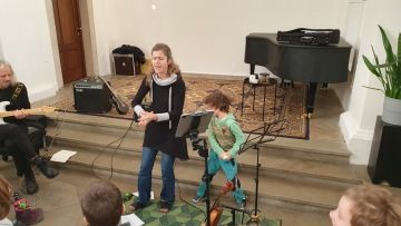 Za lidovou vánoční písní netradičně. Tímto programem v galerii Atrium na Žižkově nás provedla skvělá Gabriela Vermelho. Hrála na nástroj podobný houslím nebo viole, ale měl pět strun. My už víme, že se jmenoval kvinton. Ukázala nám také looper, smyčkovač, se kterým jsme si sami vyzkoušeli pracovat při nahrávání a doprovodu naší vlastní koledy. Jingle bells jsme si zazpívali jako operu, rock nebo rock and roll. K tomu všemu nám Gábina zazpívala v doprovodu kytaristy Petra Filíka další koledy z různých koutů světa. I ve škole jsme pokračovali zejména v hudebním rytmu, protože pilně nacvičujeme na naši pondělní besídku.