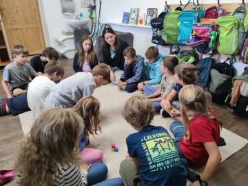 Letní prázdniny i super adaptační pobyt je za námi a celá třetí třída je před námi. Tento týden jsme se zabydlovali ve třídě, která se během prázdnin trošku změnila. Hledali jsme si svá nová místa, malovali obrázky, abychom si třídu mohli začít zdobit a zútulňovat, připomínali si pravidla, hráli zábavné hry, zpívali a hodně opakovali to, co si pamatujeme z druhé třídy. V češtině hlavně tvrdé a měkké skupiny a v matematice počítání do 100 a násobilku. A první angličina? Tu jsme strávili trochu v pohybu, trochu u knížek. Hodně jsme opakovali slovní zásobu z loňského roku, zahráli si hry a poznali naši novou učebnici Funpark.
