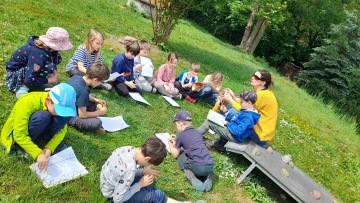 Při angličtině jsme zopakovali počasí (rainy, cloudy, snowy, sunny, windy, a rainbow). Věnovali jsme se také výrobě našich hodin na počasí. Potom jsme se posunuli k novému tématu "Playtime", ve kterém jsme poznali nová slovíčka "a scooter, a bike, a skipping rope, a trampoline, a ball, a boat". Na konci dne jsme si v týmech zahráli opakovací kvíz, který zahrnoval hádanky, písničky, spelling i slovní zásobu