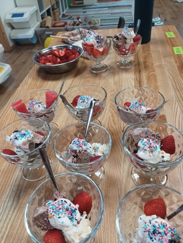 Kde jen začít? Rarášci se rozdělili na dvě party. Podle fotek a naší konverzace jsme obě party měly opravdu povedený týden. V Lipencích bylo víc Rarášků než Školkáčů a raraši měli jasnou převahu :-). Chodilo se na procházky i pěkně daleko a hrály se hry a pohoda byla znát. Druhá parta odjela do dalekých Slavonic a tam je vždycky krásně, to se musí nechat. Bejčkův mlýn je vždy přívětivý, zvířátek pořád plno, kočky přítulné a místní jezevčice Cora s námi chodila do lesa na tři hodiny a dávala na nás bedlivý pozor. Při krmení zvířátek jsem zase na ní dávala pozor já, protože jeden kohoutek utekl a to víte, Cora je lovecký pes a my Pražáci :-). Dopadlo to dobře, uhlídaly jsme jí s Alenkou a ta pak odchytla kohoutka a vrátila ho zpátky ke slepičkám hedvábničkám. A ty jsme si i pohladili! Krmili jsme pštrosa, emu, oslíky, kozy, pidiprasátka, liška se na nás dívala z pelíšku a nejlepší jsou morčátka a králíčci. No a v lese jsme potkali vojenské bunkry hrdinných vojáků, co byli připraveni bránit naši zemi. Ve Slavonicích jsme navštívili atelier paní Zuzany Krajčovičové a byla pohoda, zase. Všichni mají krásná natisknutá trička. Ve středu jsme váleli sudy v nádherné louce, šli takhle jako doleva a doufali, že za tím lesíkem bude další louka a byla. A pak oheň a pak domů a těšíme se na další školku v přírodě. Máme termín. A i když to nebylo na koupání, ale na holinky, byl to parádní týden. V pátek už jsme se sešli v plné sestavě a protože před námi byl první červen a to je Den dětí, dopřáli jsme si dobroty a slavili naplno. Těšíme se na další týden!