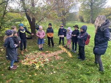 Dnes jsme vyrazili ven, abychom si užili barevný podzim - si e nám trochu pršelo, ale nás to neodradilo. Děti ve skupinách tvořily land art na téma Zdroj života. Při práci se zdokonalovaly ve spolupráci, domlouvání i vzájemné pomoci - to, jak se dětem spolu tvořilo jsme zpětně rozebírali a snažili jsme se společně přijít na to, jak to příště udělat ještě lépe. Vznikly krásné přírodní obrazy, nezapomeňte si proto prohlédnout fotky, tentokrát jsou opravdu pestrobarevné.