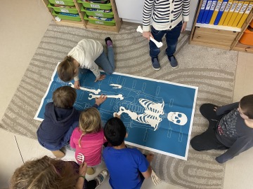 Celý týden nás bylo málo, chřipkové období je v plném proudu i u nás, ale i tak se toho mnoho zajímavého dělo. V českém jazyce jsme zabloudili do světa pohádek, dokážeme si konečně krátké pohádky samostatně přečíst. Také jsme si hráli s básničkami a některé jsme posunuli do světa hudby a zkusili si je zazpívat. V matematice už počítáme přes desítku, stavíme stavby z kostek, vytváříme plány staveb, hrajeme si z dřívky, hádáme myšlené číslo a učíme se hledat chyby. A také umíme pojmenovat mnoho kostí v lidském těle, umíme je na sobě ukázat. A věděli jste, že lidské srdce se za rok stáhne 36 milionkrát? Pří tělocviku jsme ta svá těla protáhli hraním na opice - okolí řeky nám posloužilo jako opičí dráha.