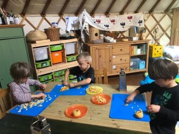 V astronomickém podzimu je třeba se nejprve řádně zorientovat. Střelkou kompasu nám budiž odvaha, která nás vede do dalšího dne, ať se v něm má stát cokoli. Každý návrat do rodičovské náruče je nám odpoledne oslavou naší hrdosti. K těmto rytířským ctnostem přistupujeme skrze sv. Václava a sv. Michaela. Vyzbrojeni štítem, kopím, mečem, křídly, helmicí a koněm noříme se do lůna lesa, abychom se utkali s vlastním strachem a statečně získali plod poznání. Mezitím zápolíme v kohoutí podobě, vyrábíme meče, lozíme po laně, Vysíláme své vojsko, pečeme štrúdl a kompot, vystřihujeme andělská křídla, zpíváme, že slunce je štítem Michaela a že sto dvacet párů volů jede do Němec. Naše výpravy do lesa jsou hlubší a dosahujeme nových území. Noříme se hloub i do příběhu nesourodých přátel slona a mravence, o které se hrdinně stará veverka. Nakonec se stáváme zloději a jdeme přelstít draka a ukradnout mu jablko. Jeho řev je hrozný. Snad přečkáme jeho ohnivý dech. Sbíráme do batůžku kuráž, už brzy se bude předškolákům na Sněžce hodit!