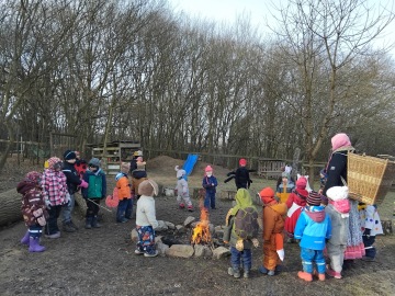 Na Dvorečku si užíváme pískoviště, dílničku a vylepšujeme bunkr. Uklízíme prostor po zimně, řežeme pilkou, v kuchyňce chystáme pískové dorty.