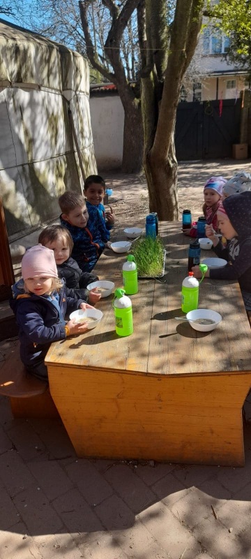 Týden jsme zakončili společnou hostinou s Rarášky, samozřejmě zelenou - upekli jsme si k tomu kopřivové placky a našli k nim medvědí česnek a bršlici kozí nohu :). Že to zní legračně? Ano, také nám to naši školkáči s úsměvem říkali :). Přejeme vám krásné velikonoční svátky plné radosti, úsměvů a sluníčka