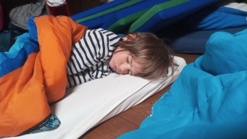 Mrazivé ráno lemuje slunečný den. S ezo písní na rtech vzýváme živly. Na Den Země zem odstrojujeme od lidských šperků a ukládáme je do kontejnerů všech barev. Zaměstnáváme ruce i hlavu, seznamujeme se s částmi těla, hrajeme si na ortopedii a vytváříme rentgenové snímky. Spíme jako zabití, u kamen a s Andersenem. Přilepeni k zemi vzdorujeme větru. Kutálíme se regulovaným řečištěm.