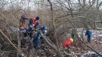 Do výšky, za sněhem. Vločky se s námi potkávají na půl cesty. Mezi nebem a zemí. Hrajeme škatulata, začínáme naslouchat adventním písním. Lano nás spojuje, kruh v listí vyznačuje ring zápasu, lanko vymezuje bezpečí pro práci. Zdobíme si jurtu barevným papírem, tím, co z něj vyrobíme. Před obědem začínáme sušit zablácené svršky. Skládáme puzzle, kreslíme na velkou plochu. Malujeme na sníh kulaté, barevné, reliéfní obrazy. Sáňkujeme na lopatách, pátráme po drakovi. Kreslíme pavučiny i jen tak. Posloucháme praskot kamen. Očekáváme první adventní neděli. Vineme adventní věnec.