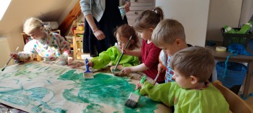 Hráli jsme si na zvířátka a se zvířátky, plazili, lezli jsme, vydávali zvuky, zpívali, rytmizovali, cvičili i výtvarničili - tvoříme farmu! Venku jsme toho spoustu naběhali. Objevovali jsme, jak se říká mláďatům, kde vlastně zvířata žijí a taky jsme zjistili, že spoustu z nich lidé i jedí :) Vyprávěli jsme si zlehka o koloběhu přírody. Taky jsme obědvali a svačili venku- těšíme se, až se ještě trochu oteplí a budeme to dělat častěji :)