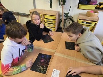 Všechny vás zdravíme v novém roce a jsme tu s další zprávou z naší třídy. První dny jsme začali pěkně v klidu, v našem kruhu jsme si vzájemně sdíleli zážitky z vánočních prázdnin. Bylo super slyšet, co všechno kdo zažil a jaké dárky nám udělaly radost. Abychom tu atmosféru ještě trochu udrželi, ve výtvarce jsme si vyrobili vlastní barevné ohňostroje pomocí vyškrábávací techniky. V češtině jsme se ale museli rychle obout do práce. Celý týden jsme procvičovali probrané učivo, protože nás už příští týden čeká velké ověřování znalostí. V matematice jsme se zase posunuli o kousek dál a začali jsme si osvojovat postup písemného dělení. Je to docela oříšek, ale krok za krokem tomu přicházíme na kloub. Středa patřila přečteným knihám. Proběhly prezentace přečtených knih a musíme se pochválit, většina z nás už to zvládá naprosto skvěle! Nejlepší na tom je, že už jsme všichni překonali svůj ostych mluvit před třídou. Někteří z nás si to dokonce už vysloveně užívají a vyprávějí o svých knižních hrdinech jako profíci. V tělocviku jsme se pořádně zahřáli u fotbalu. Trénovali jsme přihrávky i kličky, takže o pohyb rozhodně nebyla nouze. Při angličtině jsme se kromě jiného věnovali i psaní "What can I say about myself?" Brainstormovali jsme, co všechno už o sobě v angličtině umíme říct. Následně jsme spolu vše prošli, napsali o sobě krátké texty a ilustrovali je. Pátek se pak nesl v duchu velkých příprav. Chystali jsme materiály na pondělní Den otevřených dveří. Už se těšíme, až předškolákům a jejich rodičům ukážeme naši třídu a všechno, co nás ve škole baví.