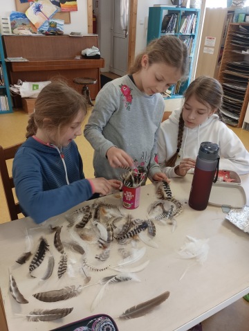 V tomto týdnu měly naše ranní kroužky podobu skoro až přírodovědných přednášek. Vlčáci přinesli několik pokladů, které při svých toulkách přírodou objevili a my si tak důkladně mohli prohlédnout jelení parohy, roh z kamzíka nebo také slepýší ocásek. V průběhu týdne se nám sešlo i několik druhů ptačího peří. Bylo tedy co obdivovat. Kromě soukromého bádání jsme se zapojili i do bádání společného. Společně s Veveřáky jsme se sešli k objevování povrchu České republiky, abychom sehnali dostatek informací k tvorbě vlastních učebních pomůcek. Práce nám šla od ruky a ačkoli ještě nemáme úplně hotovo, můžeme být poměrně dosti spokojení. V závěru týdne jsme u rukodělných prací potrápili hlavně svou trpělivost a taky obratnost rukou, ale pššššt, je to zatím ještě trochu tajemství :-D.