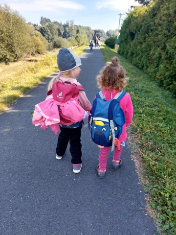 Do batůžků si odvahu sbírají předškoláci na blížící se expedici na Sněžku. Důležitý rituál našich dvorečkových nejstarších. Poctivě se věnujeme přípravě - ověřujeme obratnost na laně, přeskakujeme, podlézáme, navzájem se provázíme poslepu - to kdyby náhodou zavládla na vrcholcích hor mlha... Písnička o ježcích, kteří na dobytí Sněžky potřebují běžky, protože bez nich je to těžký, zaznívá v ranních kroužcích celý týden. Nemusíte se bát, předškoláci, jste připraveni!