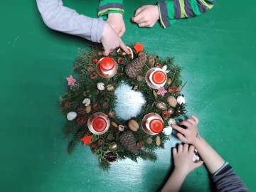 Adventní věnec, a na něm čtyři svíce, těšíme se na Vánoce
