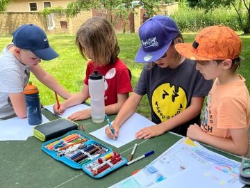 Po návratu ze školy v přírodě jsme se ještě na chvíli vrátili "do lavic". Zaměřili jsme se hlavně na zaznamenávání pocitů. Někdy slovy, někdy barvami, někdy způsobem relaxace. V úterý jsme se sešli na pozemku, abychom zvěčnili naše společné bytí na fotce. Než se vrhneme na celkové opakování, ještě jsme si v tomto týdnu něco přibrali. A byly to předložky. Teď už víme, kde je najdeme a proč je potřebujeme.