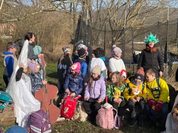 Tento týden jsme zahájili společným masopustním veselím. S dalšími třídami jsme šli průvodem na pozemek, kde jsme hráli, tančili, soutěžili a i na koblihy došlo. Další dny jsme věnovali prezentaci rodokmenů. V průběhu týdne jsme se probírali také hodinami a délkami not. Zjistili jsme, že jedno nám pomáhá připochopení druhého, ale každý to máme jinak. Učíme se vzájemně vnímat své potřeby a limity. Na tělocviku jsme tedy testovali, co vydržíme, jak se udržíme. Spolupráce nutná:-)