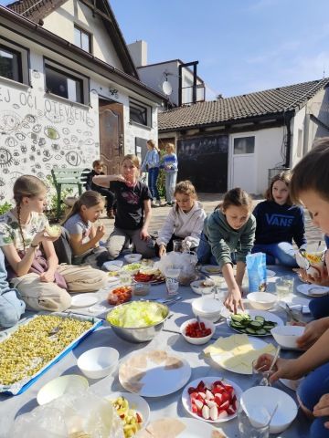 Jak to asi dělají naši rodiče, když jdou nakoupit? Dělají si seznam? A jak to uděláme my, když chceme společně posvačit vlastnoručně připravenou svačinu? Chce to pořádný plán! Vymyslet zdravou a výživnou svačinu tak, aby nám chutnala a vešli jsme se do rozpočtu, není jen tak. Ale zvládli jsme to. Navrhli jsme jídelníček, vyrazili do terénu obhlédnout možnosti a ceny, vytvořili finální verzi nákupního seznamu a vydali se na nákup. Krájení a nošení nebralo konce, ale s úderem přestávky jsme se sešli na dece na dvoře, abychom společně pobyli a pojedli. Lucius Licinius Lucullus by záviděl. V anglickém jazyce Vlčáci připravili ve skupinkách Easter Treasure Hunt, kde další skupinu dovedli pomocí instrukcí do konkrétního bodu ve městě. Společně si zahráli Easter Bingo.