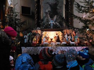 Běháme lesem a lovíme jmelí. Jezdíme po suchém listí jako po skluzajdě. Šplháme za výhledy a koulíme se z kopce. Nastavujeme tváře zimnímu sluníčku na louce. Zpíváme. Zpíváme. Zpíváme. Adventní písně a koledy. Nejkrásněji zní v kostele sv. Mořice, který je ve slavnostním nazdobeném vánočním kabátku. Postojíme pod obrazem Panenky Marie, nasloucháme příběhu o jejím putování. Prohlédneme si betlém, přispějeme do kasičky. Náš lesní betlém uklízíme do sucha.