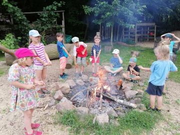 Hrajeme si do zásoby, než se kamarádi rozutečou na prázdniny. Stavíme bunkry a domečky, malujeme do hlíny, házíme a chytáme, běháme a skáčeme. Stavby z písku neomrzí. Voda v potůčku nás příjemně chladí a skrývá mnoho pokladů živých i neživých. Na zahrádce je potřeba plít a zalévat. A hledat hrášky! A vonět si k levanduli, už je její čas. Les je sytě zelený, tráva na louce vysoká, až nás skoro vidět není. Písničky na slavnost už máme pod kůží, program je jasný, cestička na místo předškoláků prošlapána. A to místo... To místo je tak překrásné, a už brzy nebude tajné, už brzy se na něm sejdou desítky očí a uší a srdcí, které budou svědky velkého rituálu loučení. Předškoláci, mazáci, kterým patří svět. Malíčci, kteří už se chystají nebýt malíčky. Parta, která dozná změn. Svět se točí.