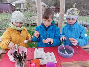Velikvokvonoce, veliké noce, Velikonoce. Povídáme si o nich, čteme si v knížce od Terezy Říčanové. Barvíme vajíčka papírová, zdobíme vajíčka opravdová. Pleteme pomlázky z vrbového proutí. I píšťalička zapíská. Na zelený čtvrtek na oběd nedostaneme špenát, ale zachraňujeme to zelenými kopřivovými chipsy. Je třeba zasít hrách! Před námi čtyři volné dny. :-)