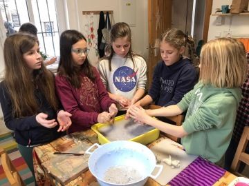 Máme za sebou první polovinu ledna. V češtině a matematice opakujeme na blížící se ověřování a ověřujeme svoje znalosti. Učíme se správně používat vzory přídavných jmen, s/z na začátku slov a tvoříme příběhy podle nových karet Kouzelná cesta. V matematice už sčítáme i odečítáme zlomky s různým jmenovatelem a začali jsme novou velkou kapitolu práce s daty. Povídali jsme si o tom, co to data jsou, kde se s nimi v životě potkáme a učíme se je číst a interpretovat. V anglickém jazyce jsme provedli průzkum ve třídě - What time do you go to bed? What time do you go to school?. Přečetli si text o dobrodružné cestě do školy kánoí. V informatice jsme si přečetli o počítačové grafice, dozvěděli, co je to algoritmus a vyzkoušeli si jednoduché šifry. Vypravili jsme se na výlet do Vesmíru a připravujeme se na další vesmírná bádání a objevování. Tvořili jsme ruční papír. Stříhali jsme, trhali, zalévali horkou vodou, míchali a pozorovali jak se papír pomalu, ale jistě rozpouští. V čase čekání na rozpouštění papíru jsme se rozpomínali co víme o době Osvícenství. O Marii Terezii, jejím synu Josefovi II. a o reformách,které zavedli. Také o životě na vesnici a ve městě. Také o zrušení nevolnictví, kdy se na konci 18.století začalo víc a víc lidí stěhovat za prací do měst. Ve městech vznikaly velké dílny manufaktury. A my si takovou Veveřáckou manufakturu vytvořili a vyzkoušeli ve třídě právě s tvorbou ručního papíru. Poté jsme se ve vlastivědě jsme se posunuli na konec 18. století a začali národní obrození a také jsme zapluli do průmyslové revoluce. Četli jsme, vyhledávali si v knížkách to, jak v té době lidé žili, jak se proměňoval život ve městech, jak docházelo k přechodu od ruční výroby v manufakturách k tovární a strojní velkovýrobě za pomoci nových zdrojů energie. A dozvěděli se, že zásadním vynálezem byl parní stroj, který umožňoval lepší pohon pro železniční a lodní dopravu. Další vynálezy jako ruchadlo, bleskovod, lodní šroub jsme vyhledávali ve skupinkách a pak informace sdíleli s ostatními. A také jsme se vypravili na výlet do Vesmíru a shlédli film o sluneční soustavě. Celý týden jsme ukončili vytvořením Novoročenky (přání pro rok 2024), vymalovali jsme a vepsali naše přání na námi udělaný ruční papír.