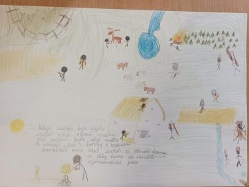 Kromě hlubšího noření se do tématu podstatných jmen a kategorie pádů; sloves a přednosti matematických operací jsme se potopili až na dno neolitické revoluce. Vzpomínali jsme na to, co už víme, hledali informace nové a tvořili ze svých těl propletence znázorňující vývoj společnosti v jednotlivých obdobích. Stávali se z nás harpuny, zdechliny sobů, ohniště, ramena řek, stáda i pastevci, králové, vojáci, obchodníci i otroci. V anglickém jazyce Vlčáci pracovali ve dvojicích - vymýšleli jaká všechna zvířata znají z mazlíčků a jaká z lesa. Ve skupinách sehráli scénku dle příběhu. Ve dvojicích si zahráli zvířecí domino. V kruhu přiřazovali zvířatům jejich oblíbená jídla.