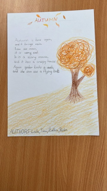 Asi ve smrtelném tempu, protože v průběhu týdne Vlčáků ubývalo a ubývalo. Naše obavy z toho, že pátek bude tak komorní, že se nevyplatí ani rozsvěcet a topit, se naštěstí nenaplnily a i díky tomu vznikla spousta pěkných věcí. Jako třeba anglické básně na podzimní ranní kruhy, které Vlčáci tvořili v menších skupinkách. V angličtině jsme se také seznámili s pozdravy během dne - Good morning! Good afternoon! Good evening! Poslechli si příběh, a následně ho sehráli. Zopakovali si pokyny ve třídě.