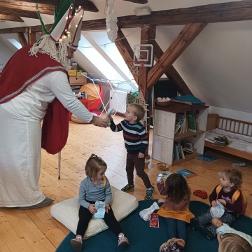 Od pondělí jsme zapalovali jednu svíčku na našem adventním věnci v kroužku, pekli perníčky se skřítkem Perníčkem, nakukovali do našeho adventního kalendáře, který jsme od skřítka Perníčka dostali. Se školkáči jsme byli na vernisáži jejich obrázků na lávce, moc jsme si to užili, také se dívejte, až budete zase procházet po lávce! Prodlužovali jsme náš řetěz a pokreslili pytlíčky pro Mikuláše. A ten v pátek opravdu přišel!