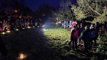 Slavnost je pro nás pomyslným předělem mezi podzimem a začátkem zimy. Stromy už shodily skoro všechno listí, les pomalu upadá do zimního ticha, rána jsou tmavší a odpoledne kratší. Je posilující sejít se v sounáležitém kruhu jednostromových dětí a rodičů. Společně jsme tichým průvodem za svitu lucerniček doputovali na pozemek, vedeni jen světly svíček. Ztišení. Lehké napětí. Očekávání. Odvaha. Rodinná blízkost. Odměna. Kouzlo. Světlo ve tmě. Slovem i písní nám druhostupňoví připomněli život a skutky svatého Martina. Podělili jsem se rohlíčky. Bylo milé prohodit pár slov u ohně s teplým nápojem nebo polévkou v ruce. Děkujeme, že jste byli všichni s námi!