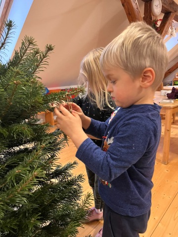 Tento týden už opravdu voněl Adventem se vším všudy! Začali jsme zpívat koledy, dozdobili jsme si hernu - každý den přibyly na našem krásném stromečku další a další ozdoby, protáhli jsme řetěz až na druhou stranu k oknu, přihodili sem tam světýlka, ozdobili vánoční vrkoč a připravovali spoustu věcí na besídku, která nás čeká přístí týden Rarášci počítají svíčky, které zapalujeme v kroužku na adventním věnci, a s očekáváním vždycky stojí pod adventním pytlíčkem, co z něj dneska vypadne :)