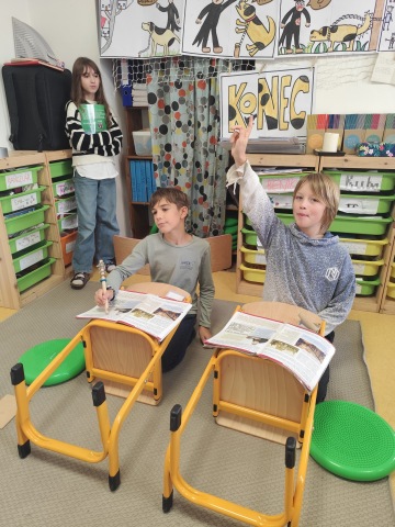 Začali jsme pěkně zostra, a to projektovým dnem. Téma Smysluplné pomoci jsme zaměřili na život s handicapem. Vlčáci se tak mohli vžít do kůže cizince, objevovat své superschopnosti, nebo si zkusit, jaké to je, když je všeho zkrátka moc. V týdnu jsme se opět setkali s Evou Novákovou nad tématem citové, vztahové a sexuální výchovy. Tentokrát jsme pátrali po tom, kde se bere a jak se vyvíjí miminko, jak by měly a neměly vypadat vztahy mezi dětmi a dospívajícími nebo třeba kde můžeme hledat odpovědi na naše další otázky. V tělocviku jsme si dali pořádně do těla. Část Vlčaček si připravila hodinu plnou gymnastiky a pohybu. Koncem týdne jsme byli sami sobě učiteli. Po nastudování příslušného materiálu, jsme látku zprostředkovávali dalším skupinám. Shrnuli jsme si život v době baroka, shlédli několik scének o tom, jak to dříve mohlo vypadat ve škole a zjistili, že Jan Amos Komenský sice upřednostňoval výchovu bez fyzických trestů, ale žádný pacifista to nebyl. Jeho"přemrštění metličkou" hovoří za vše. Nakonec jsme si užili i čtenářskou dílnu, díky které jsme objevili několik literárních kousků, které by stály za přečtení. V anglickém jazyce si Vlčáci zahráli domino a další hry v rámci procvičení slovesa have got, školních pomůcek a nábytku. Každý Vlčák vyplnil pracovní list při sledování videa o New York City. Na internetu vyhledávali informace o Thanksgiving, které následně zapsali do myšlenkové mapy a použili v krátkých scénkách.