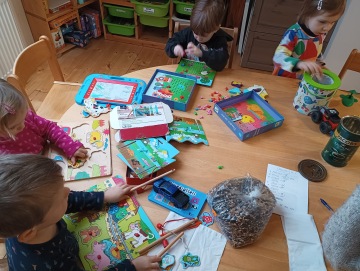 Zasněžená zahrada je prostě krásná a dá se na ní i stopovat - ptáci, kočky, naše boty... Nebo vylézt na ledový kopeček ke skluzavce je jako zdolat Matterhorn a nakonec Raraši zjistili, že skluzavka dobrý, ale po břiše nebo po zadku to jede uplně stejně i mimo skluzavku. Kus a kousky ledu jsou prostě naše. Také jsme oslavili narozky a tančilo se a tančilo. V herně denně cvičíme a je neuvěřitelné, jak to pořád Rarášky baví a těší se na své barevné podložky. Tento týden Rarášky zaujaly vkládačky a malování a různé skládačky víc než písek a modelína. V pátek jsme si užili Školkáčovic hernu a jejich zavěšenou síť. Byl to krásný týden a těšíme se na další!