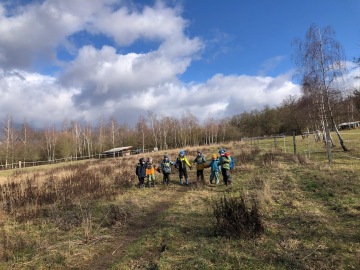 Hrajeme si na kočičky, pejsky, stavíme domečky z větví, hýbeme se do rytmu, hněteme hlínu.