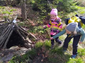 Putovali jsme ke studánkám (Výskoky) na naše oblíbené místo. Cesta byla pro některé brnkačka, a někdo musel opravdu zabrat. Ale zvládli jsme to. U ohýnku jsme si odpočinuli, posilnili se opečenými buřtíky a ještě si na místečku chvíli pohráli. Studánky jsme pozdravili a vyčistili.