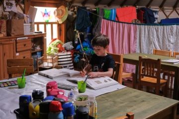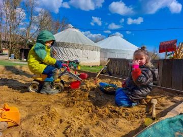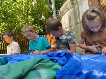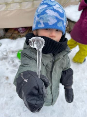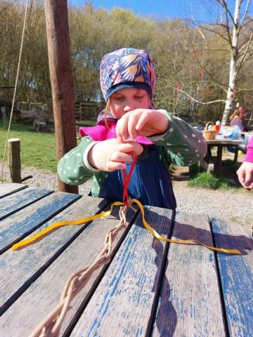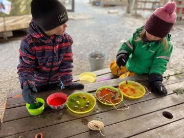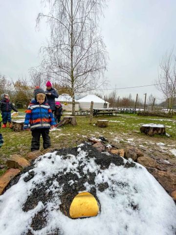 Po svačině může následovat tvořivá činnost, společná aktivita, individuální práce nebo volná hra. Záleží na obsahu připraveného tematického plánu, který vychází z našeho školního vzdělávacího programu Rosteme spolu. Řídíme se heslem “Není špatné počasí, jen špatné oblečení.” Většinu času trávíme venku. Pouze pokud je opravdu velký mráz nebo už dlouho padají trakaře, schováme se do jurty.